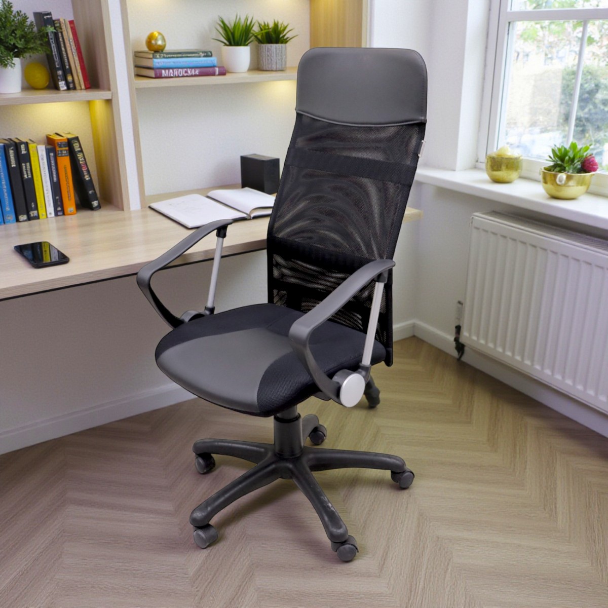 Эргономичное компьютерное кресло для вашего комфорта и здоровья.Это кресло разработано с учетом анатомических особенностей, обеспечивая оптимальную поддержку позвоночника благодаря изогнутой спинке.Дышащая спинка из акриловой сетки гарантирует превосходный воздухообмен, что особенно важно для комфортной работы в течение всего дня.