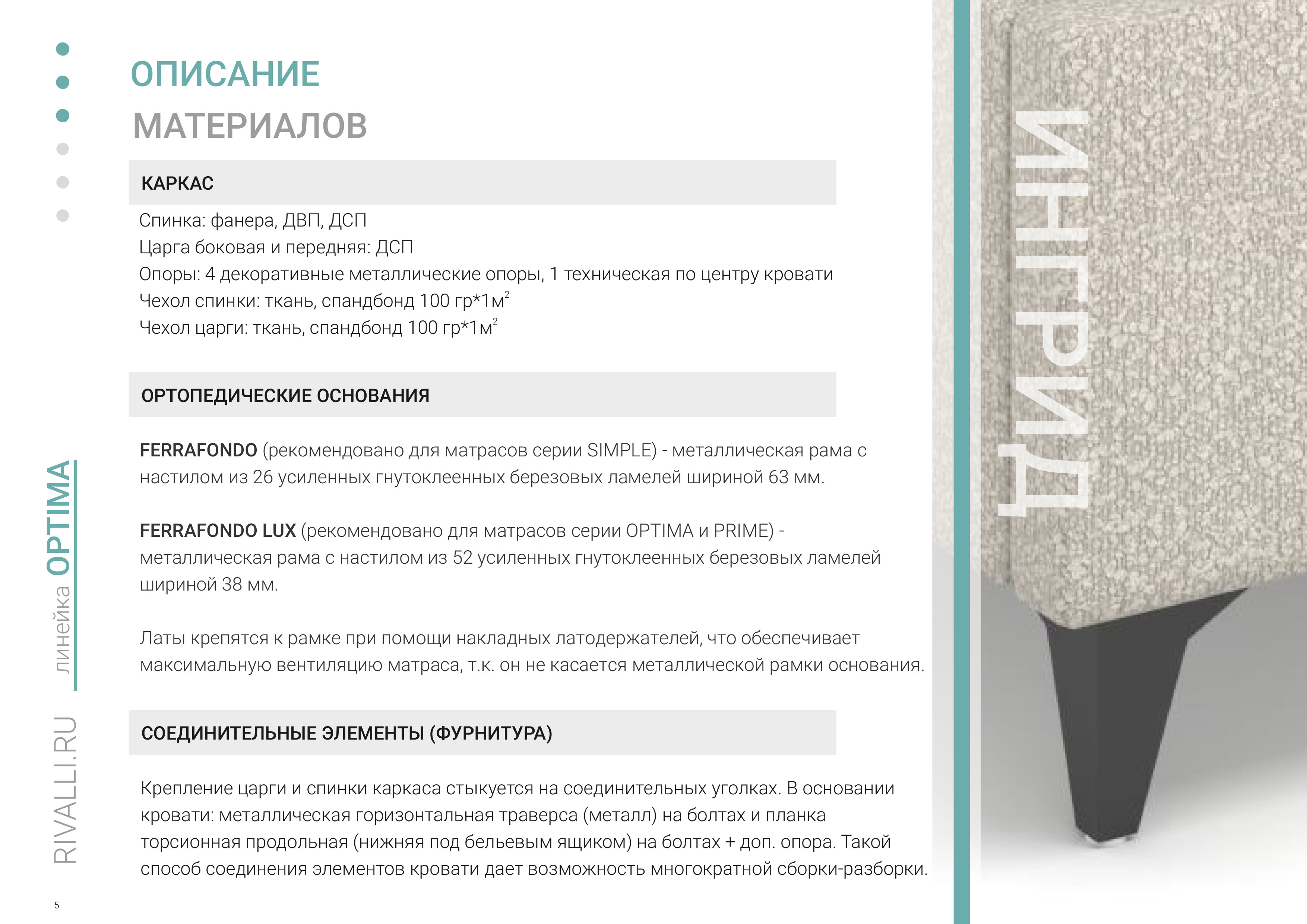 Крепление царги и спинки каркаса стыкуется на соединительных уголках .В основании кровати: металлическая горизонтальная траверса (металл) на болтах и планка торсионная продольная (нижняя под бельевым ящиком) на болтах + доп. опора. Такой способ соединения элементов кровати дает возможность многократной сборки-разборки.