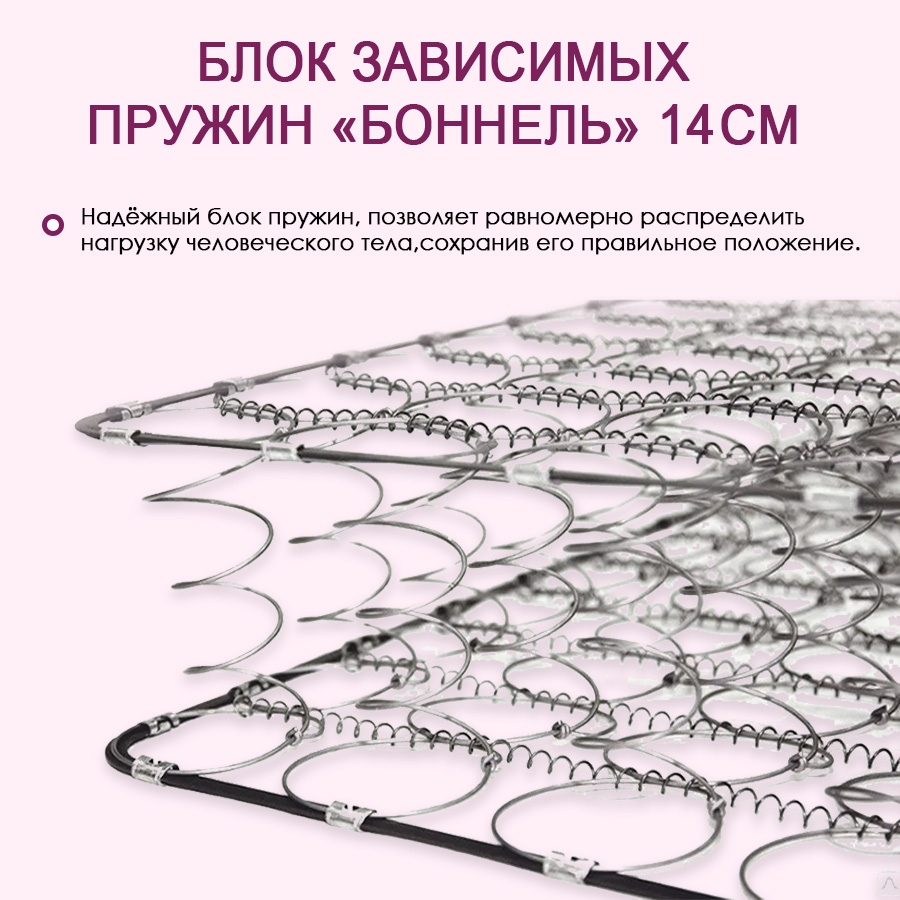 Новый усовершенствованный пружинный блок обеспечит более точечную поддержку позвоночника за счет увеличения жесткости пружин в зонах повышенного давления (плечи, тазобедренная часть, ноги). Матрас односторонний.