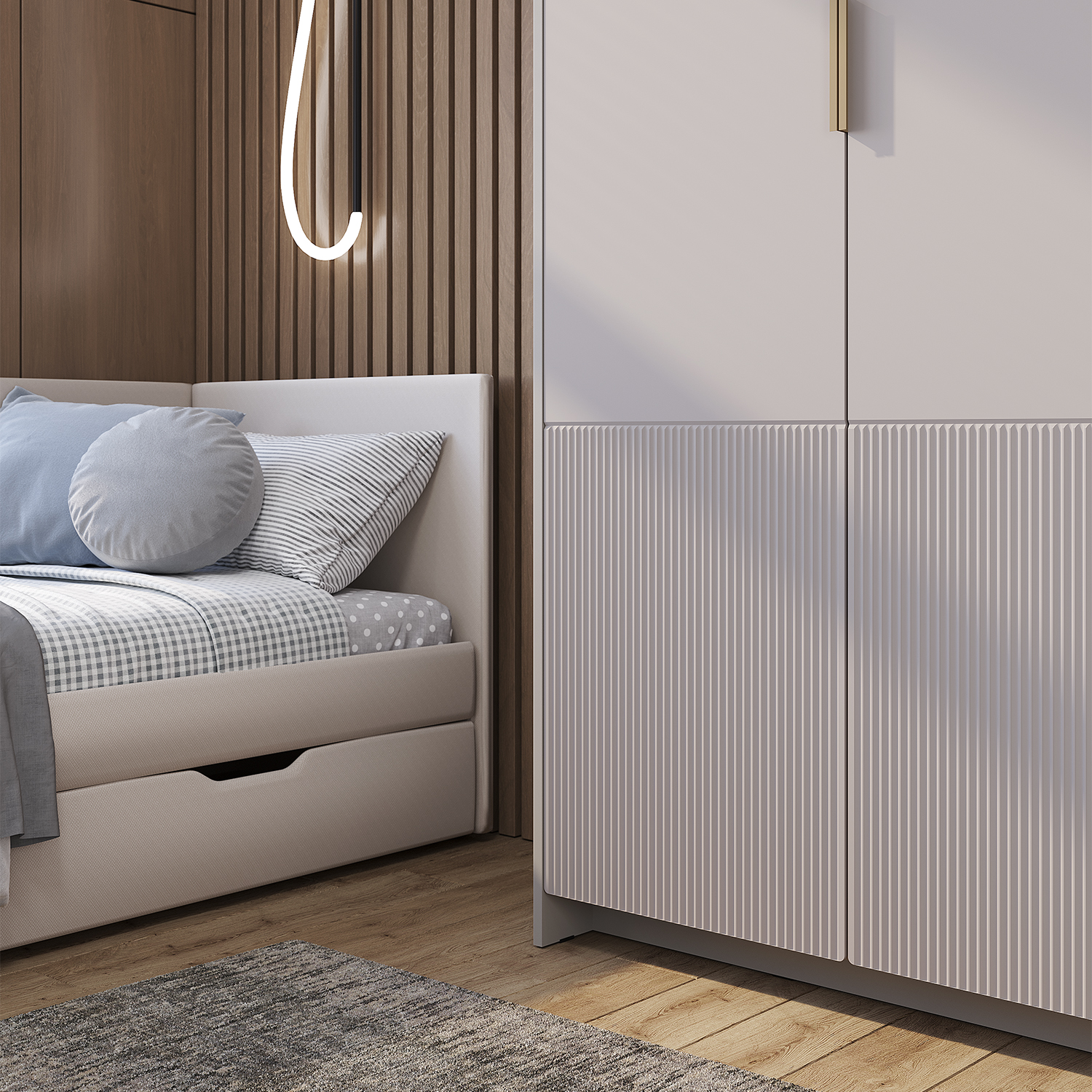 • Дизайн: Модные оттенки MF-03, элегантная фрезеровка, ручки в цвете «пыльно-матовое золото».